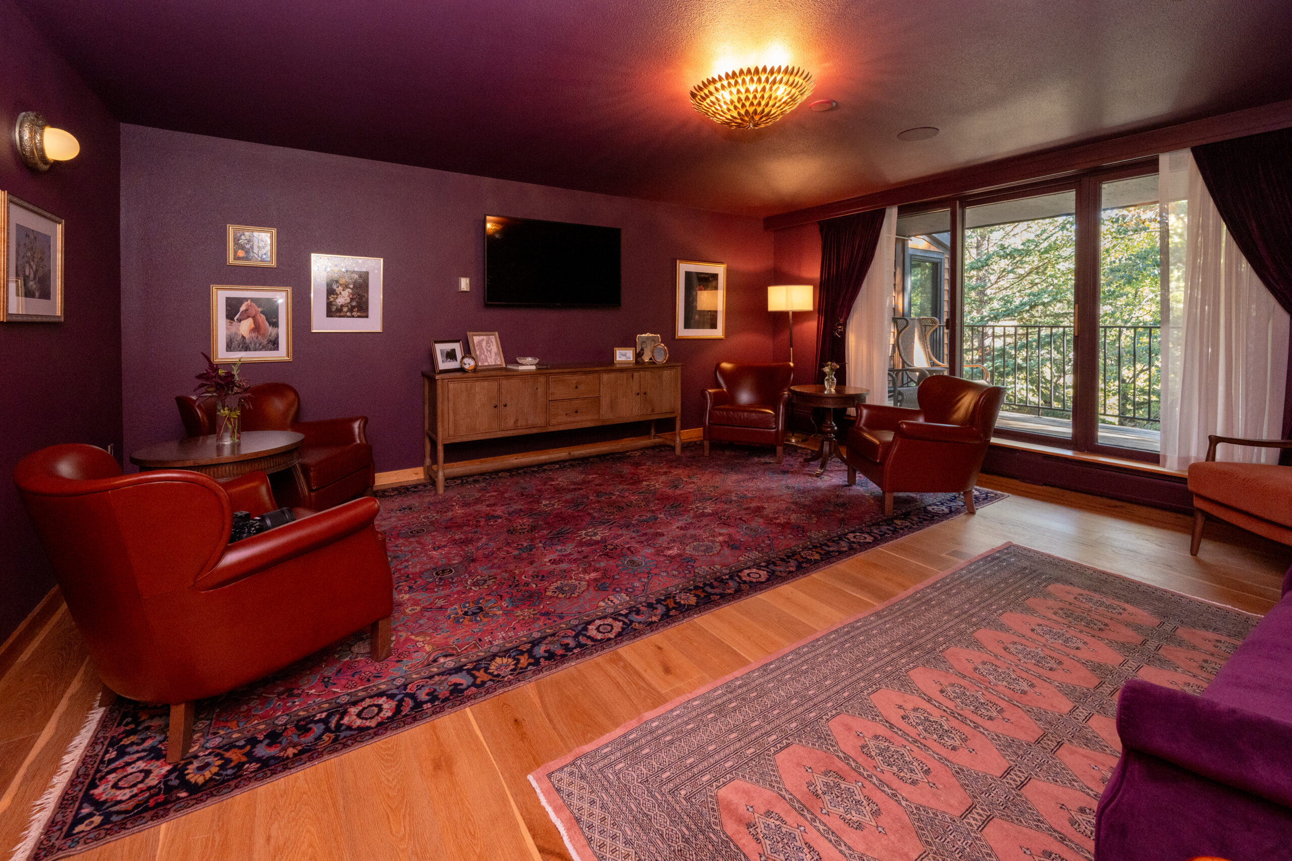 Blending lodge-style warmth with versatile function, this 600-square-foot room accommodates up to 30 guests—perfect for mid-sized meetings, receptions, or creative sessions.